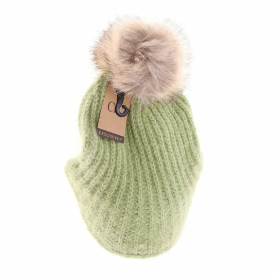 CC.Beanie Fuzzy Lined Flecked Pom Beanie