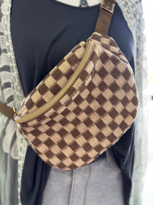 Checkered Knitted Belt Bag