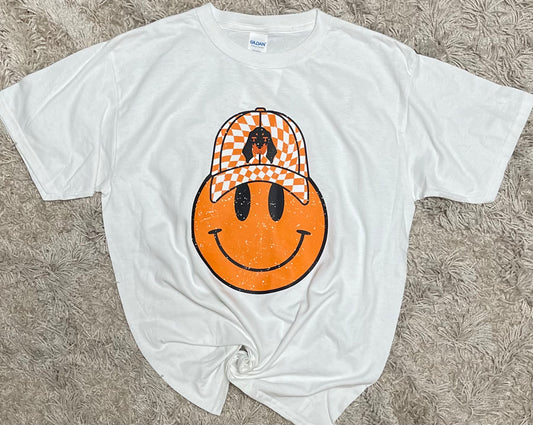 Comfort Color Faux Embroidered Floral Happy Face Tee