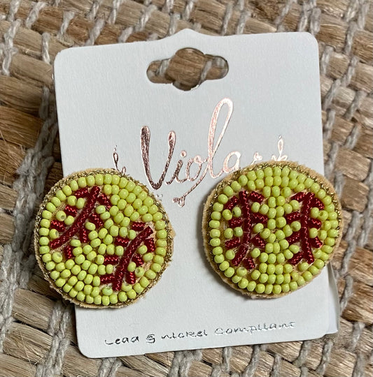 ORANGE AND WHITE SEED BEAD FOOTBALL HELMET EARRINGS