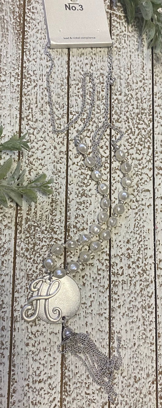 Faux Pearl Necklace with Silver Tone Initial Charm