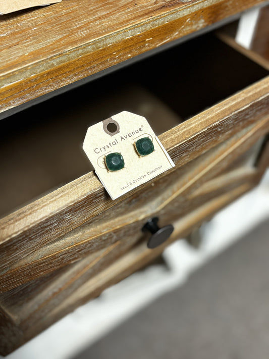 Crystal Avenue Forest Green Cushion Cut Stud Earrings