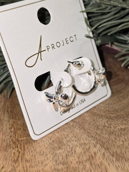 In the Ballpark Baseball Silvertone Hoop Earrings