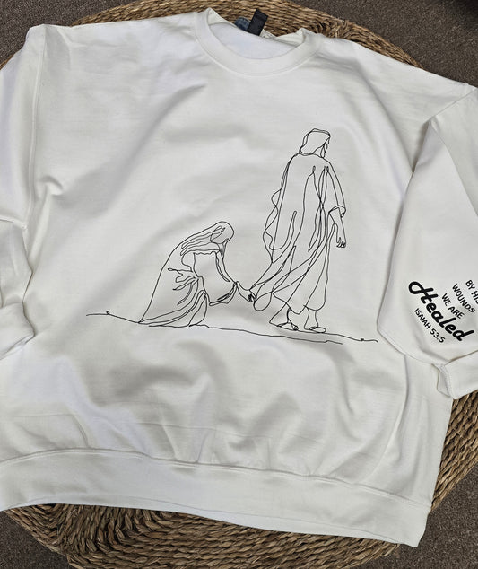 By His Wounds We Are Healed Crewneck Sweatshirt with sleeve design(PREORDER)