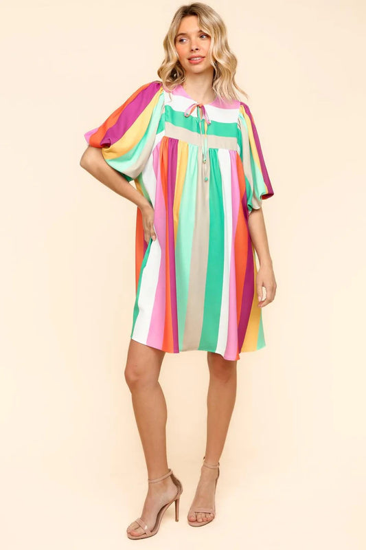 BABYDOLL MULTICOLOR STRIPE DRESS WITH SIDE POCKETS