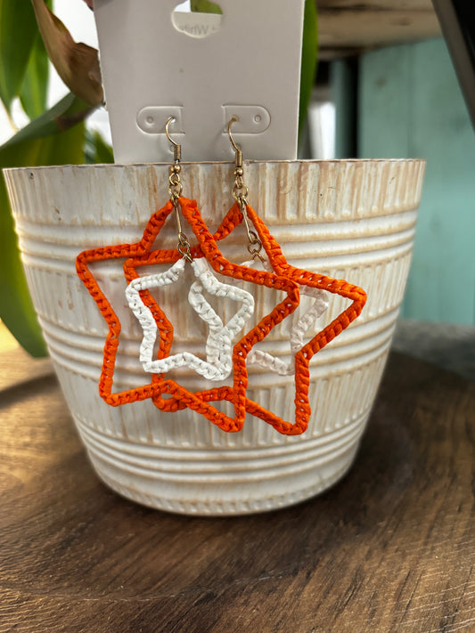 Orange and White Star Earrings