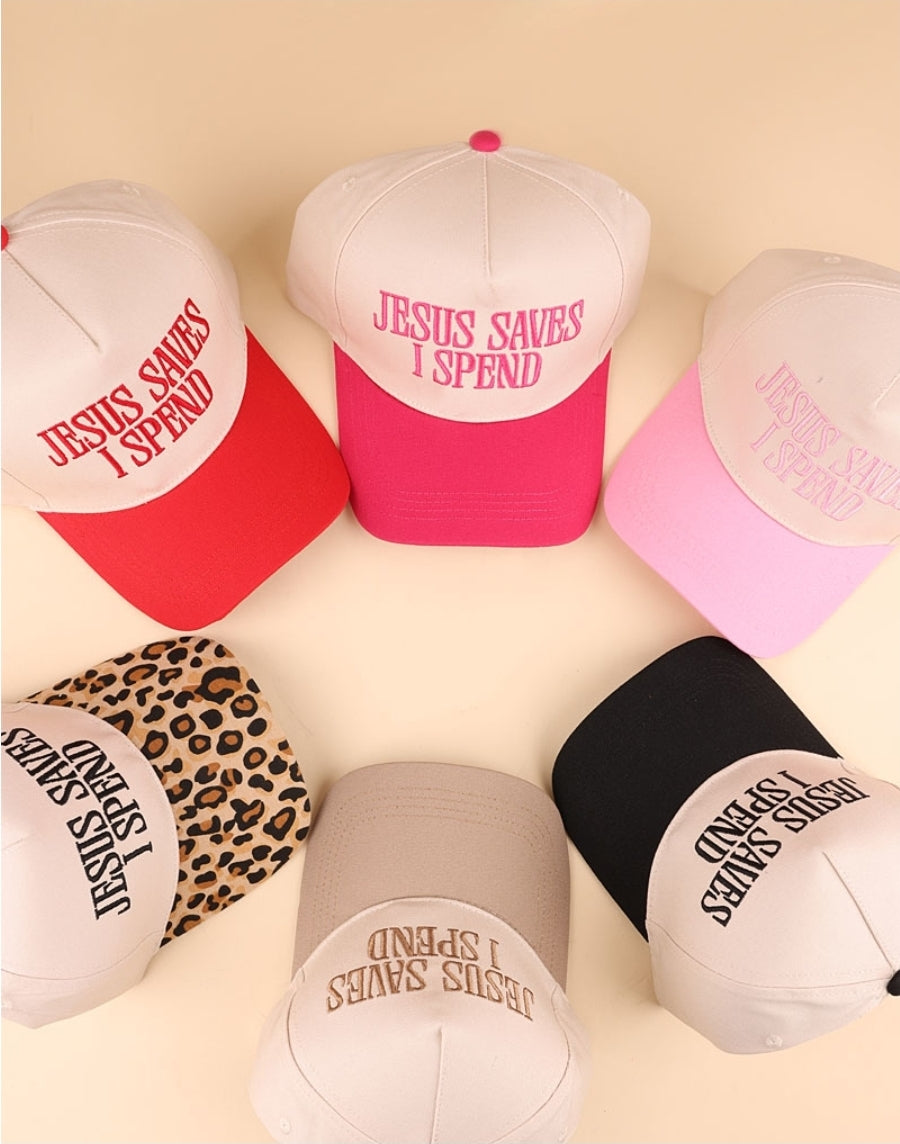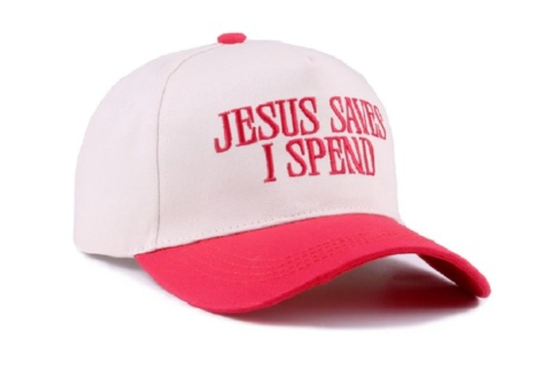 JESUS SAVES I SPEND TWO-TONE CANVAS COTTON CAP