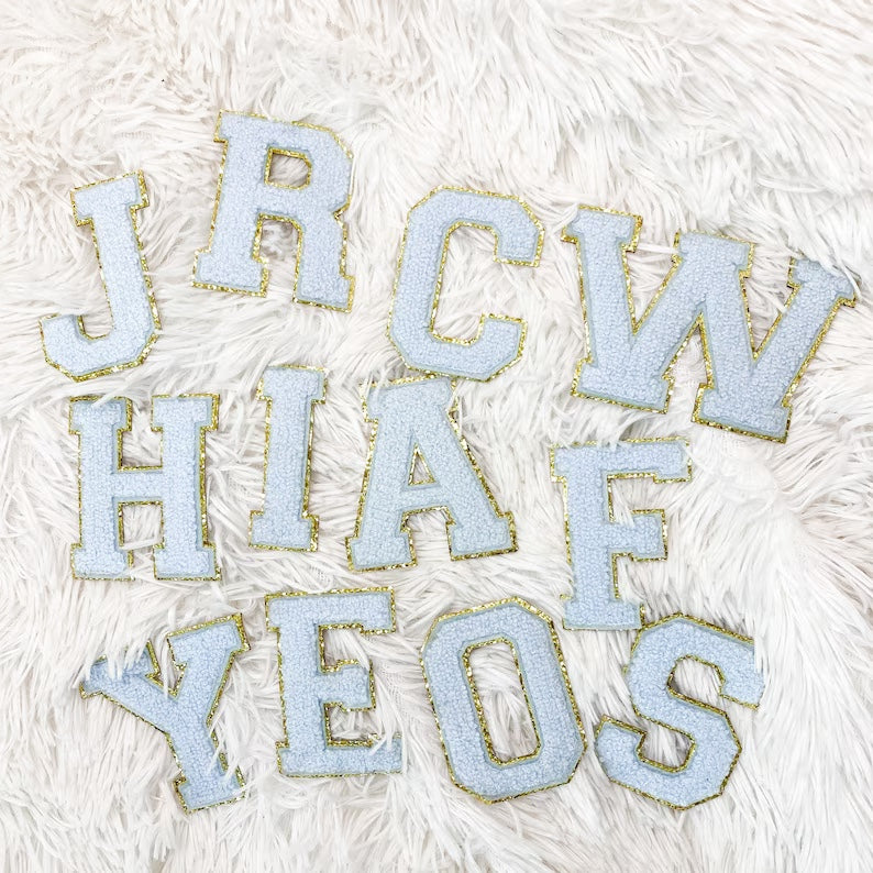 Light Blue/Gold Chenille Patch 3.14