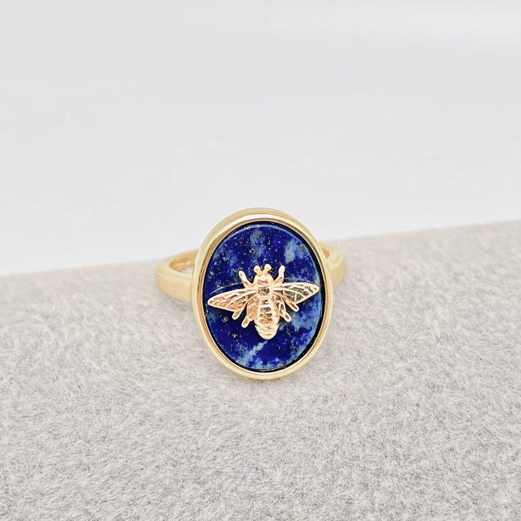 Natural Stone Golden Bee Opening Adjustable Ring