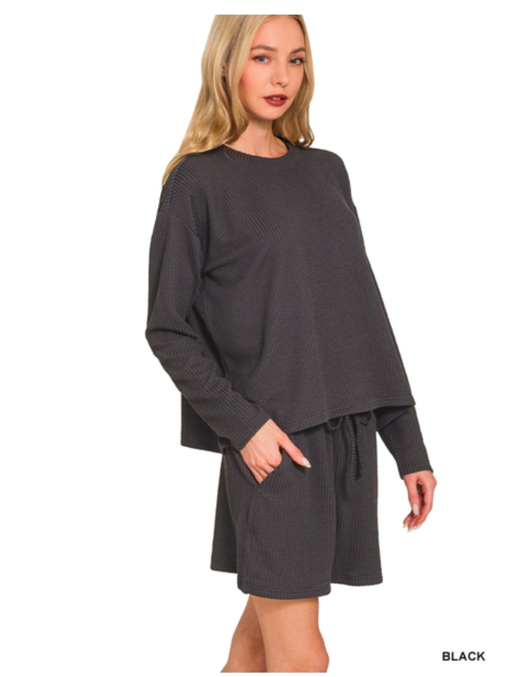 RAISED RIB LONG SLEEVE TEE & SHORTS SET