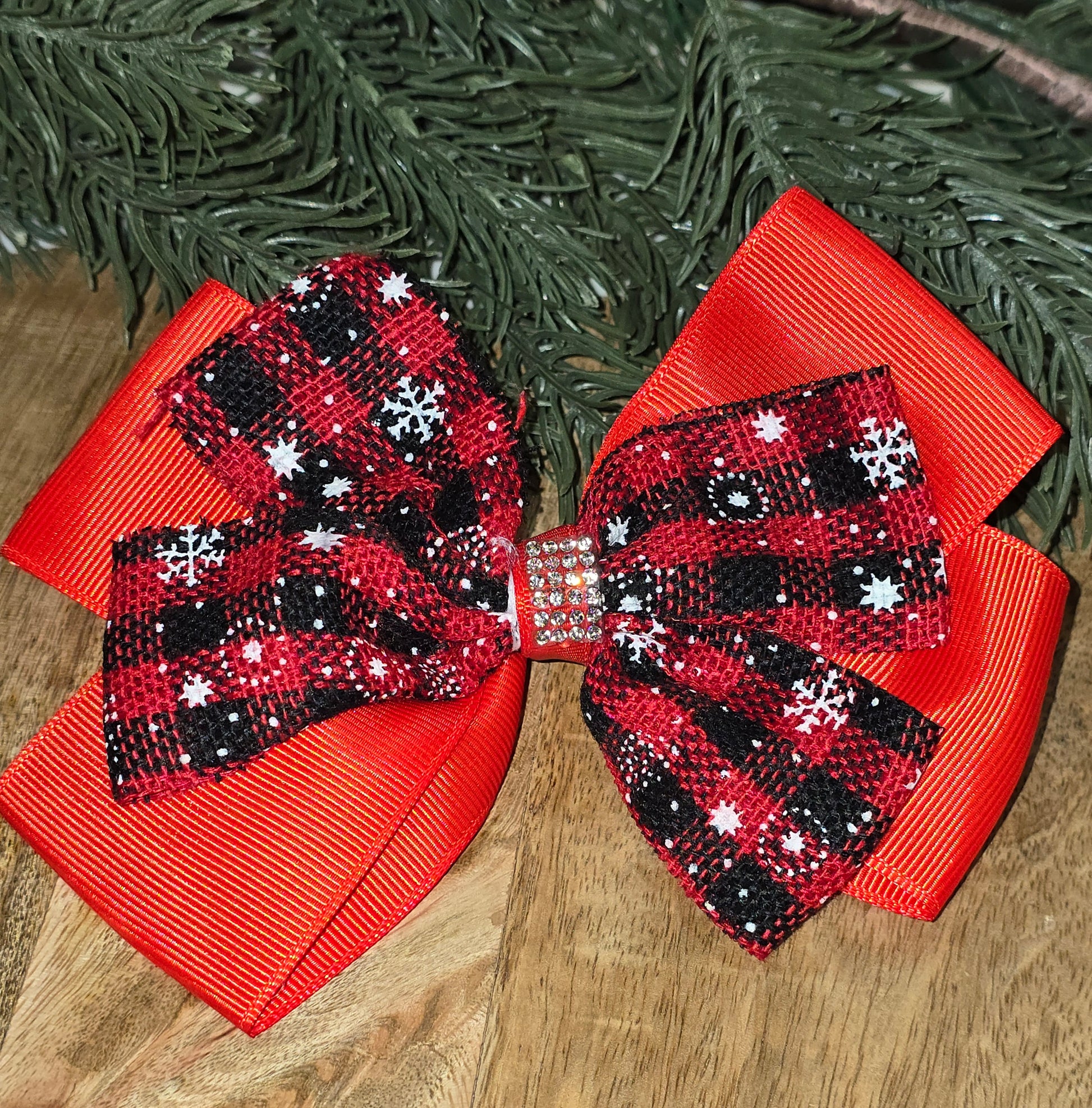 Red Plaid Snowflake Bow On Alligator Clip