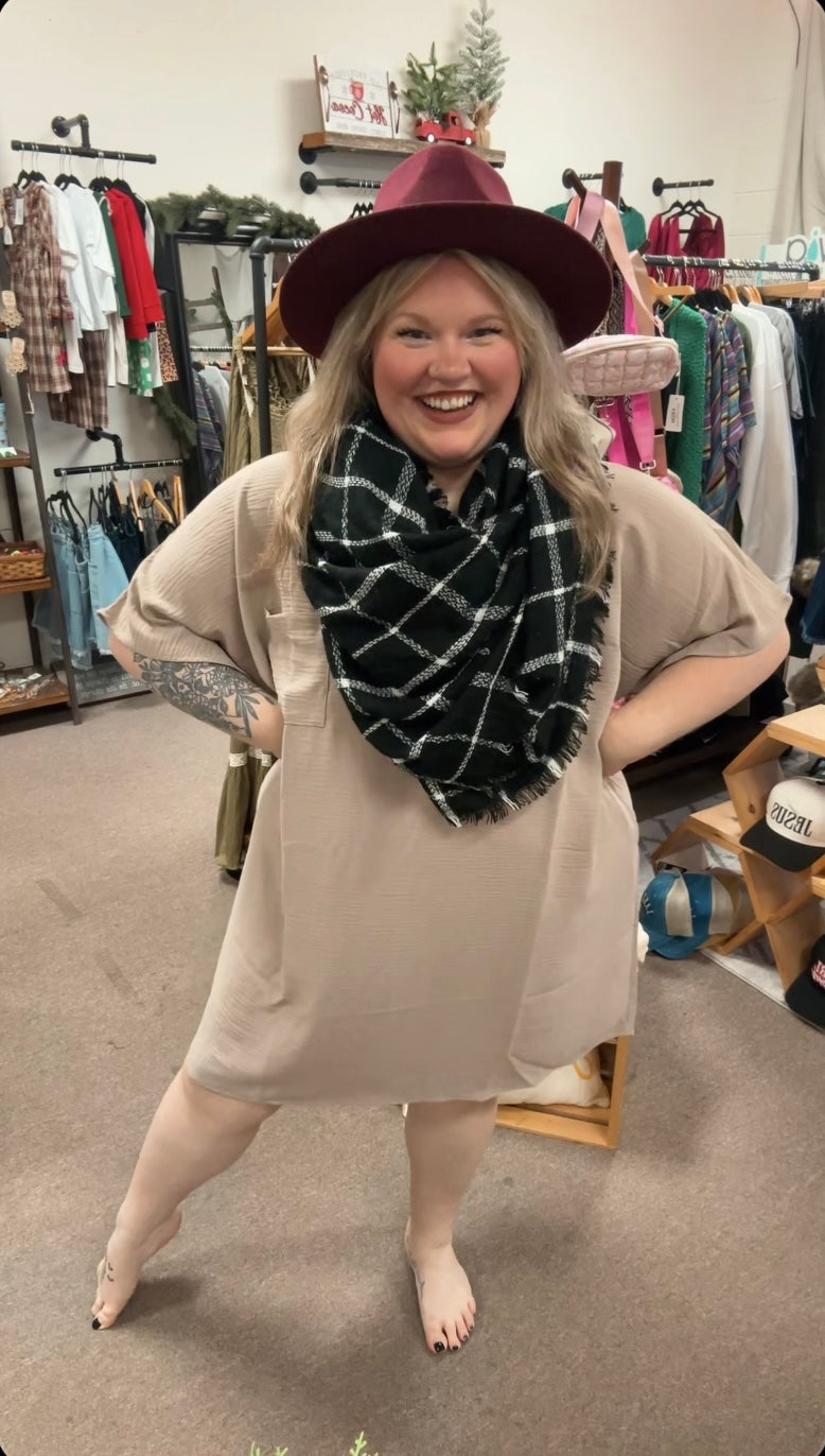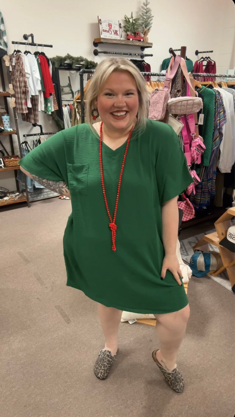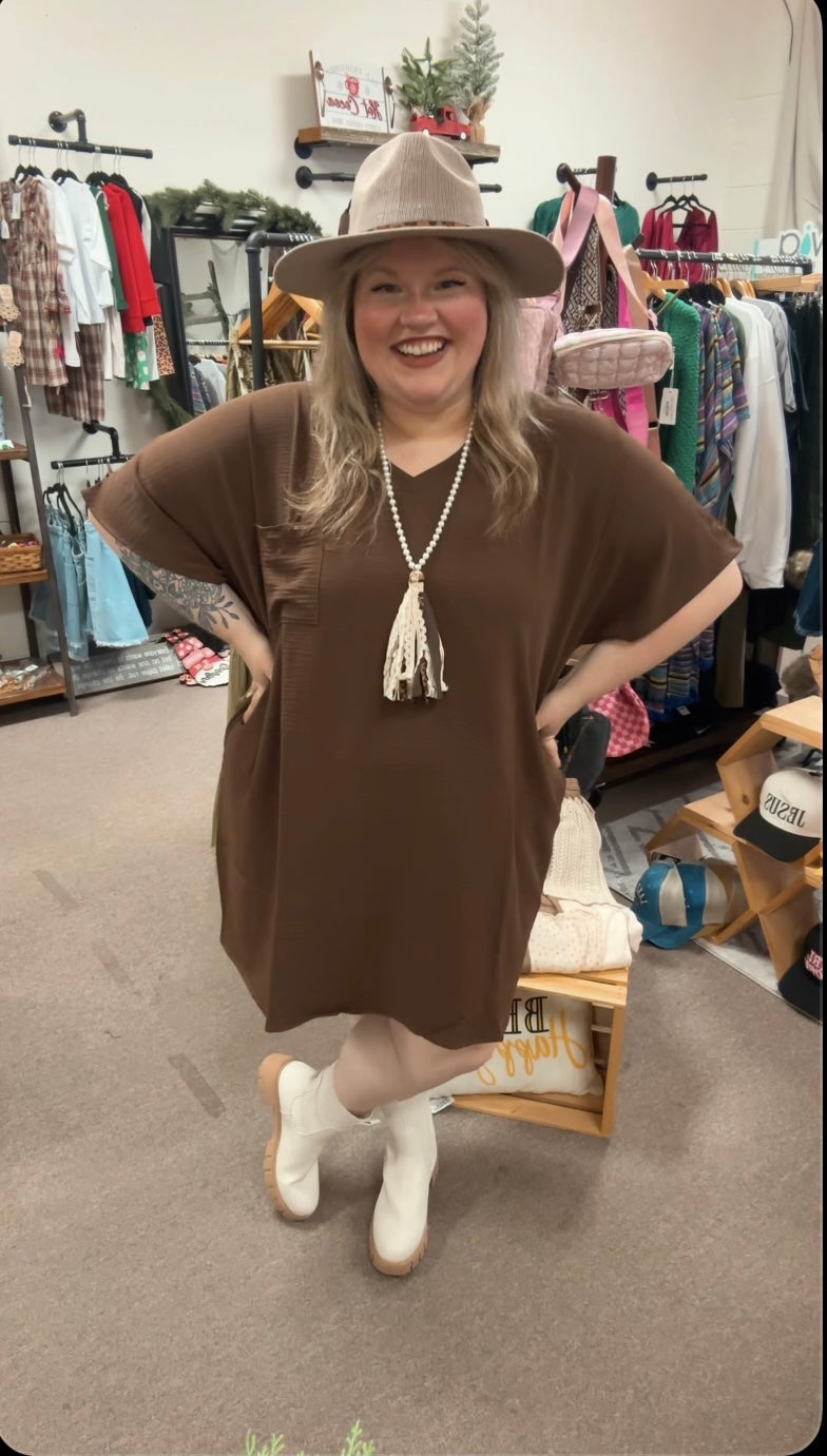 WOVEN AIRFLOW V NECK T SHIRT DRESS WITH POCKETS